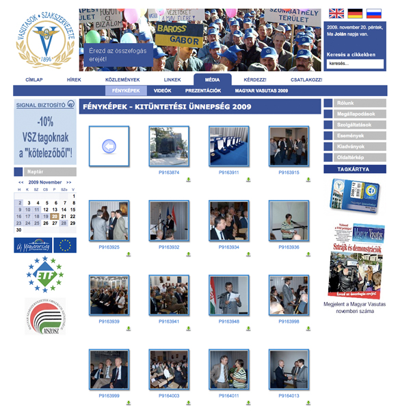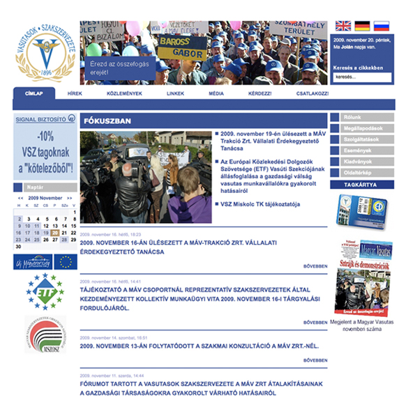 (Vasutasok Szakszervezete honlap - CMS-sel támogatott website)
